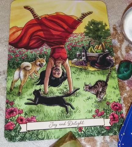 ДЕЙСТВИЕ: Что приносит вам радость? Проводите ли вы время с друзьями или семьей? Прогуливаясь по лесу или по берегу океана в одиночку? Танцуете, поете, едите свежеиспеченное печенье, еще горячее из духовки? Находите ли вы радость в ритуале, общаясь с богами? Или играть с детьми и животными, которые гораздо лучше воспринимают радость, чем многие взрослые? Составьте список способов, которыми вы находите радость, и постарайтесь найти время, чтобы включить хотя бы несколько раз в неделю. DIVINATION: у этой карты есть четкое сообщение: найди и обними радость! Возможно, в последнее время вы чувствуете себя подавленным или синеватым или просто слишком заняты, будучи взрослым, чтобы найти время для простых радостей жизни. Может быть, как и многие, ты не чувствуешь себя достойным радости. Если так, уверяю вас, вы. Либо вам, вероятно, нужно больше радости в жизни. Это не должно быть чем-то сложным или дорогим. Тебе не нужно ехать в Дисней (хотя, эй, если ты находишь здесь свою радость, иди к ней). Но вы, если вы вытащили эту карту, кстати, должны приложить усилия, чтобы найти ее или, по крайней мере, создать пространство и возможность для радости прийти к вам. И когда он там, прямо перед вами, не отмахивайтесь от него и не спешите двигаться прочь. Прими радость полностью. Погрузитесь в момент. Кричите, улыбайтесь и прыгайте, если это то, к чему это призывает. Притворись, что ты ребенок, и просто переходи к следующему. Поднимись выше и сбрось свои шлепки. Радость полезна для души. Иди и найди то, что приносит тебе радость. Сделай это сейчас!