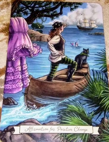 Мои ощущения от карты - вы что-то оставляете позади, впереди хорошая перспектива - корабль на рейде. Мне карта говорит о каких-то кардтнальных переменах - девушка меняет платье на костюм пирата, но она счастлива. Ее ждут приключения, свобода, авантюрный дух Я вам желаю только счастливых изменений в жизни!