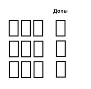 Три триады и после добавляем к каждому ряду по одной карте как дополнение(Она покажет в какой сфере,где, с чем, как поясняющая к основе). Дополнительную триаду тоже можно прочитать.