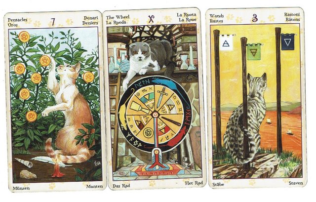 Здесь сразу хочется написать, что возможен переезд, это может случиться или в июле или через 7 месяцев ( по номиналу карты), поначалу не все будет хорошо, не так, как хотелось бы, может что-то будет не устраивать, но потом пойдет на улучшение, я сознательно пишу, не скрывая, что при переезде карты показывают и трудности, но это всегда бывает, у всех, главное, что они пройдут. Другой вариант 3-ки пент, кроме переезда, это опять же новый проект, неожиданный, но он принесет свои плоды, хотя не так быстро, я сейчас вспоминаю Повешенного, может быть это связано с 7-кой пент, то есть вложения и ожидания, но плоды все-равно будут. Еще бы я сказала, что возможно, не все в вашей семье будут согласны с этим переездом или проектом, 3-ка посохов также может показывать срок действия, вполне возможно эти изменения продлятся 3 года, но это не плохо и не хорошо, просто так будут складываться обстоятельства. Я не хотела бы, чтобы вы сильно обращали внимание именно на числовые мои толкования, потому что их сложно до точности предсказать, просто можно принять во внимание, иногда сразу что-то уже сходится.