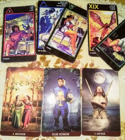 3. То, что скрыто от вопрошающего (например, другая женщина(если выпадает фигурная карта), проблемы с деньгами (если не зовёт гулять) и так далее) 5 жезлов (паж мечей, 2 мечей, Туз жезлов, 7 кубков)