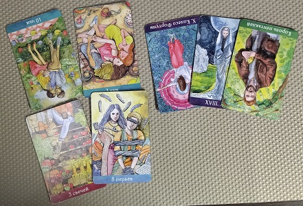 9). Общие тенденции в личной жизни - Королева перьев пер. и Императрица пер. Конечно хочется верить в чудеса, но надеяться на них всё таки не стоит. Во-первых, даже если и наметятся какие то тенденции, Вам самой, будет очень сложно их принять, и решиться на перемены. На это может повлиять, опыт не совсем удачных, семейных отношений, либо Ваш взгляд, на эту ситуацию, к тому времени, кардинально изменится. Во- вторых, увы, не выпало ни одной карты, указывающей на широкую спину и крепкое плечо