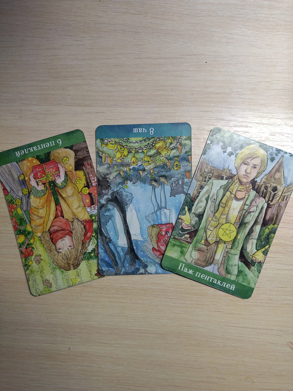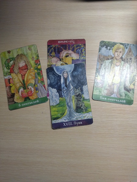 Объявится ли мужчина до 24.12 включительно? - 6 пентаклей пер., 8 чаш пер., Паж пентаклей
