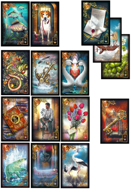 4. Что плохого - Змея+Аисты+Лилии = Собака - Здесь больше влияние от женщины выходит. Возможно из близкого окружения. Она может тебя в чем-то поучать. Попытается склонить к своему мнению. Может будут какие-то изменения в планах, связанные с ожиданием или другом.