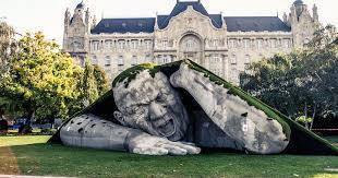 Выразительная скульптура появилась недавно на площади Сечени (Széchenyi Square) в Будапеште: прямо из под земли, разрывая травяной покров, на поверхность вылезает каменный великан, напоминающий страшного персонажа средневековой сказки. Автор этого экспрессивного изваяния – венгерский художник и скульптор Эрвин Лоран Эрве