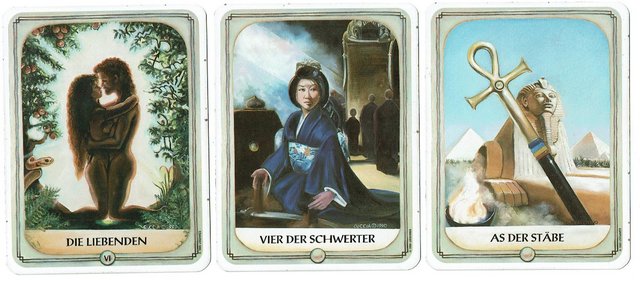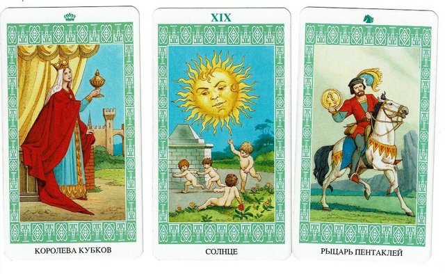 Задействованы 3 человека, может быть это ваши коллеги или те, кто связан с этими документами, но только когда выпадают несколько персон на какую то ситуацию, то нужно быть очень острожным, думаю, что один из выпавших людей, король куб, ваш знакомый, который посоветовал этот вариант, но карты говорят, что в дальнейшем это каким-то образом может сказаться на материальной выгоде и так же вариант, об этом может узнать или обнаружит какая-то женщина ( королева меч), в этой колоде она не очень пприятная) и это станет известно третьему лицу, мужчине, от которого вы зависите или находитесь под его управлением.