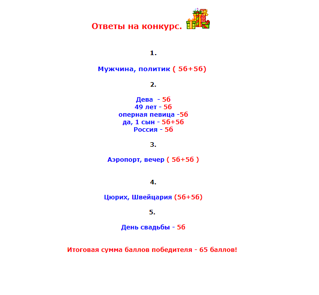Хочу всех от души поблагодарить за участие в конкурсе, за ваши ответы, очень хочется надеяться, что конкурсы еще будут и мы не раз встретимся в этих темах!!!