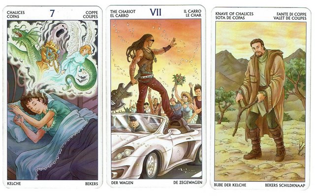 Карты дословно показали твое рассмотрение направлений... пока мечтаешь и выбираешь, но в принципе, должна что-то выбрать и в этом посодействует мужчина или он будет движущим звеном, это когда человек является в чем-то примером и хочется за ним тоже этим заниматься...что касается сроков, то это не короткий срок, а немного позже, Колесница как правило затягивает сроки...)