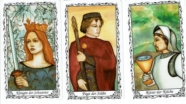 Выпали все фигурные карты и они показывают васодной семьей. Обратите внимание, чтоваш сигни здесь королева мечей и в первомвопросе на вас были мечевые карты, а муж рыцарь чаш — на него были кубковые , як тому, что между картами нет противоречия. Что касается перспективы вашего брака вуказанный период, то карты показывают,что он продолжится, только естьвероятность, что вы сами захотите егорасторгнуть, потому что инициатива имысли о расторжении брака больше идутот вас, чем от мужа. Но я хотела бы добавитьк этому случаю, чтобы вы не торопились,потому-чтов этот период возможно потепление в ваших отношениях, может быть отношение мужа изменится или какие то действия с его стороны будут совсем другие, чем нынешние, во всяком случае, что-то будет хорошее, поэтому лучше не торопиться и в указанный период попробовать самим что-то изменить в ваших отношениях.