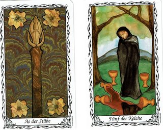 Последняя комбинация, которая завершает расклад, это Иерофант + 4 посоха... и здесь у меня как говорится, дар речи пропал... потому-что комбинация подразумевает брак, свадьбу. И естественно, я пересмотрела еще раз все предыдущие карты и поняла, что эта комбинация закономерна, если будет все так, как показали карты, ваш новый толчок в отношениях, ваша неожиданная встреча, новая идея в сфере работы или совместного обучения, когда вы будете большую часть времени проводить вместе, ваше согласие, единодушие с мужчиной на многие вопросы бытия и главное, чтобы между вами царила атмосфера мира, здесь нужно изменить немножко свой характер и свои привычки, это самое трудное, но исполнимо, поэтому, я по-раскладу вижу очень положительную перспективу ваших дальнейших отношений и не исключено, что мужчина сам в ближайшее время к вам обратится с каким-то вопросом или идеей, может быть именно то, что показали карты, будет идти с его стороны и тогда вам останется только принять это, но если такого не произойдет, тогда пробуйте сами и должно получиться.